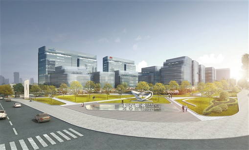 “天心数谷”规划有“起步区、核心区、拓展区、辐射区”四大片区。一期起步区,计划投资13亿元,用地面积67亩,建设20栋建筑,已于去年底动工建设,明年6月竣工。项目建成后,预计年创收7.4亿元,承载中小型企业100多家。