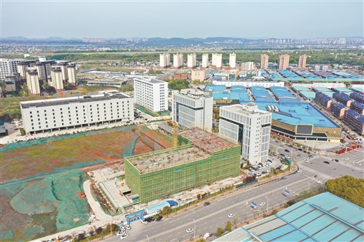 “正在建设的是二期,占地80亩,项目建成后将引进500家相关企业,提供近万个就业岗位,预计实现年产值40亿元以上。主体建筑有望于今年6月封顶。”项目施工方负责人高健介绍。