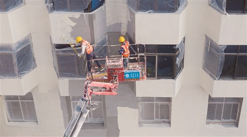 4月11日,长沙市天心区,下碧湘街城市更新(旧城改建)项目——楚湘社区改造工程,工人在进行粉刷作业。该项目是国家城镇老旧小区改造试点的首批工程,总投资6000余万元,将拆除违建和临建、改造小区环境、完善道路和停车设施等,计划年底完工。湖南日报全媒体记者 辜鹏博 摄