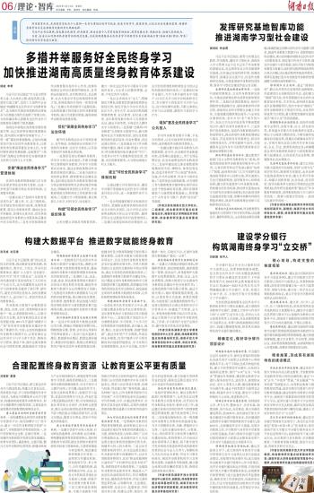 当前,我省应如何推动终身教育创新规范发展,为我国构建服务全民终身学习的教育体系贡献湖南方案?湖南日报《理论·智库》特约请专家学者建言献策。
