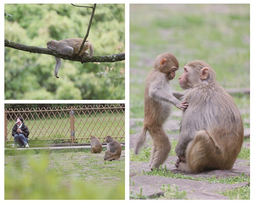 4月17日,张家界景区,成群结队的野生猕猴有的在树上嬉戏、玩耍,有的在地上歇息、觅食,“萌态”可掬。 吴勇兵 摄