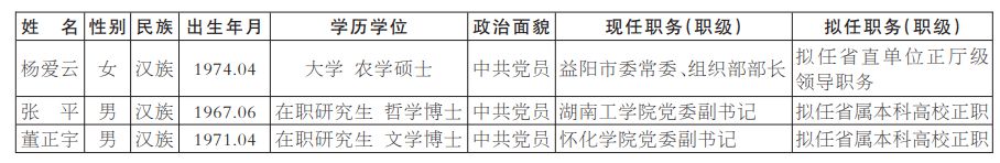 为了加强对干部选拔工作的监督,提高识别和任用干部的准确程度,现对省委常委会会议研究决定的下列拟任人选(候选人人选、提名人选)进行任前公示: