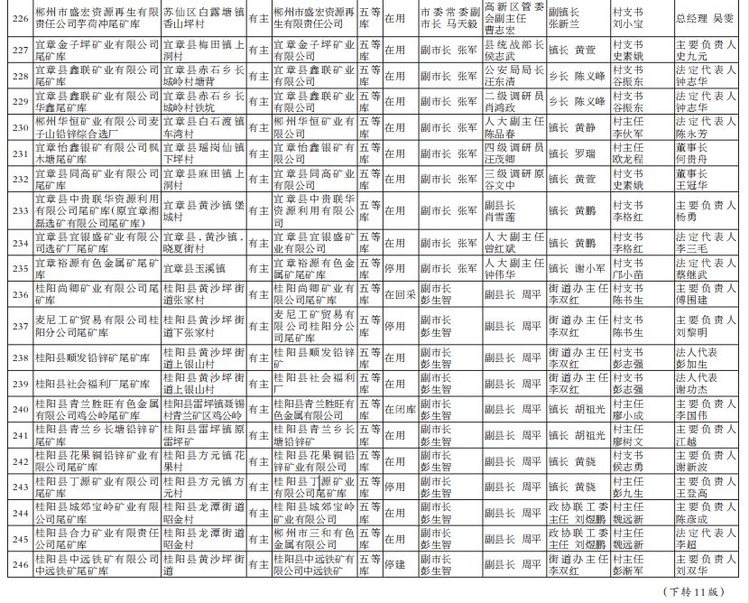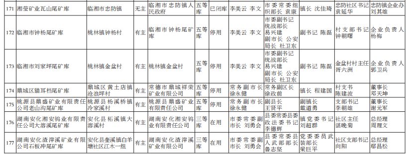 2022年湖南省尾矿库基本信息和“五位一体”包保责任名单