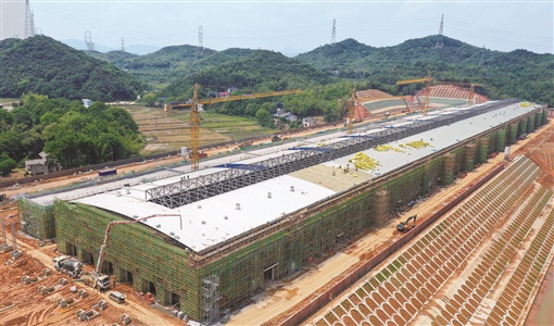 4月24日,长沙西动车运用所项目,工人在新建的检查库进行屋面、屋顶天窗架、保温颜棉板等施工。由中铁五局承建的常益长铁路长沙西动车运用所项目,正在进行装饰装修施工,工程预计6月底全面完工。