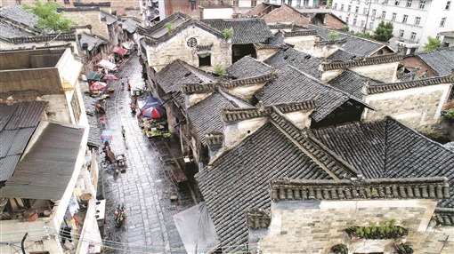 向东街的路面基本上由纵横交错的青石板铺就,形成中间微凸两边稍低的“龟背”结构。县文物保护部门邓智前介绍:“向东街有历史记载以来没有发生内涝,得益于超前的排水布局。”