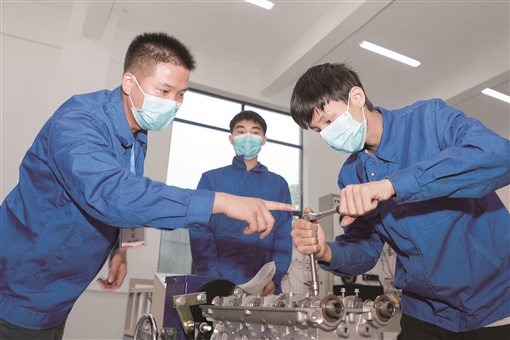 5月10日,新田县职业中专汽修实训室,老师在指导学生拆装汽车发动机。近年,该校通过校企合作、工学结合、顶岗实习、对口就业等方式,每年“订单式”为企业培育输送技能人才、产业工人达1500余人,拓宽职业教育毕业生就业渠道。 钟伟锋 摄