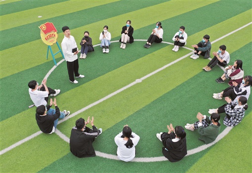 5月10日,隆回县雨山中学,南华大学支教大学生为新入团中学生上团课。当天,南华大学第三届研究生支教团在该校举行了“传递青春正能量”为主题的庆祝中国共产主义青年团成立100周年活动暨新团员集体入团仪式。曾勇 黄婷 摄影报道