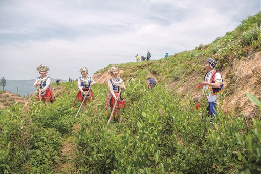 茶园为村里带来了人气,更带来了财气。在茶园采茶的脱贫村民杨文兰笑逐颜开:“工资按天算,家门口就能赚钱,日子越过越有滋味。”