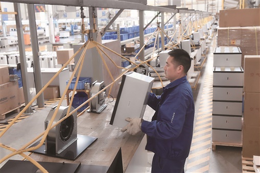 5月11日,远大洁净空气科技有限公司总装车间,工人在赶制各式医用洁净新风机。1月至4月,远大洁净新风机累计产量同比增长4倍。