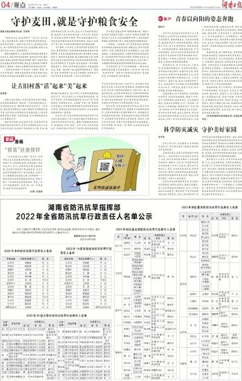 湖南省防汛抗旱指挥部2022年全省防汛抗旱行政责任人名单公示
