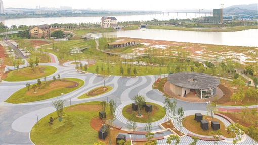 5月20日,株洲市清水塘城市公园已初具规模,碧水荡漾,草木葱茏。目前,该市按照“因地制宜、生态修复”的原则,有机结合湿地建设与海绵城市等理念,将清水塘城市公园打造成一道亮丽的风景线。湖南日报全媒体记者 辜鹏博 摄