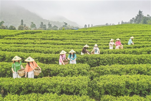 5月20日,蓝山县塔峰镇湖叠村百叠岭茶园,游客在体验采茶乐趣。近年来,该村依托良好的生态环境,大力发展高山有机茶叶种植,并将茶园打造成集茶叶种植、茶事体验、旅游观光于一体的茶文化园,推动茶旅融合发展,促进当地百姓增收致富,助力乡村振兴。彭华 摄