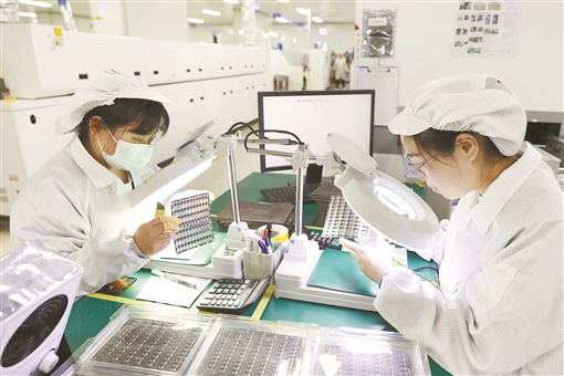 5月28日,常德经开区湖南金康光电有限公司无尘恒温恒湿生产车间内,工人在加工摄像头芯片。近年,该公司主营的光学摄像头模组、生物识别类产品迎来发展机遇。目前,公司月产能达1000万只,年产值超过15亿元。