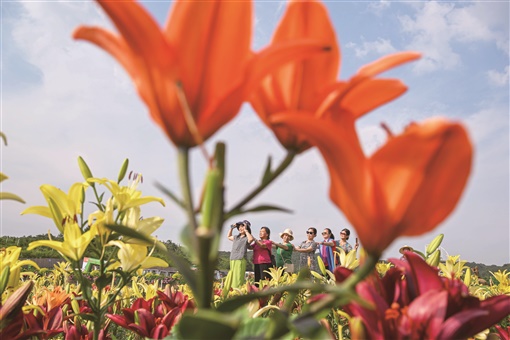 6月8日,岳阳市岳阳楼区郭镇乡麻布村霖雾百合园,游客在百合花海中游玩。近年来,该村打造集游园、采摘、购物、文创、农旅等于一体的“田园牧歌”乡村文旅农业综合体,盘活村集体经济,带动村民增收致富,助力乡村振兴。湖南日报全媒体记者 郭立亮 通讯员 李研 摄影报道