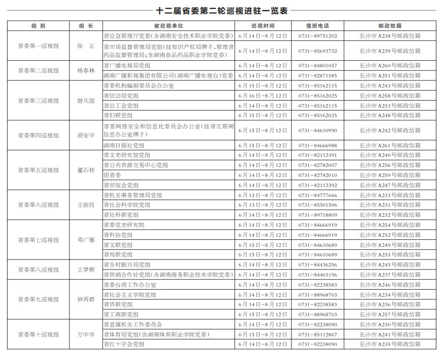 湖南日报6月16日讯(全媒体记者 刘燕娟)近日,十二届省委第二轮巡视10个巡视组完成对省应急管理厅等30个省直单位党组织及其管理的4所高职高专院校党组织的进驻工作,十二届省委第二轮巡视全面展开。