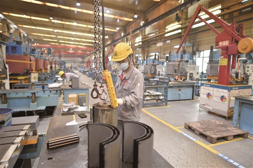 5月17日,株洲时代新材料科技股份有限公司硫化车间,工人在生产线上工作。
