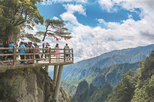 6月26日,宜章县莽山五指峰景区,游客畅游其中。随着疫情形势稳定,当地推出暑期旅游等系列优惠政策和活动,旅游市场日渐升温。