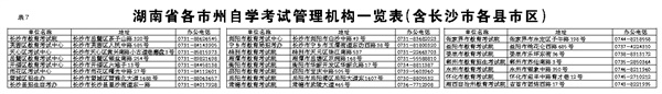 湖南省各市州自学考试管理机构一览表(含长沙市各县市区)