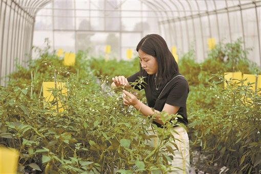在生活水平大大提高的今天,原本只是“辣”的小小辣椒,居然也多种多样多口味,满足着人们对舌尖美味的不同追求。当在现代化的实验室里看到嫩绿的辣椒静静生长,听老师们说起想把辣椒研究个透,让人们吃到更多风味的辣椒时,我不禁感慨:科研人永无止境的攀登,又何尝不是国家越来越富强、人民生活越来越美好的生动体现呢?
