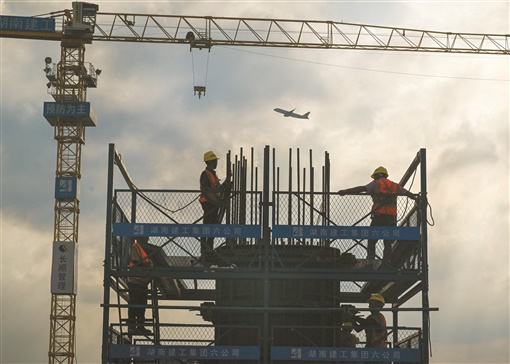 6月28日,长沙机场改扩建工程综合交通枢纽工程,建设者在高架桥上施工。该工程在国内首次采用双层平接方案,建成后将是国内交通接驳方式最多、无缝换乘效率最高的现代化立体交通综合枢纽,成为全国机场“换乘之王”。目前,工程项目建设正有序推进。湖南日报全媒体记者 郭立亮 摄