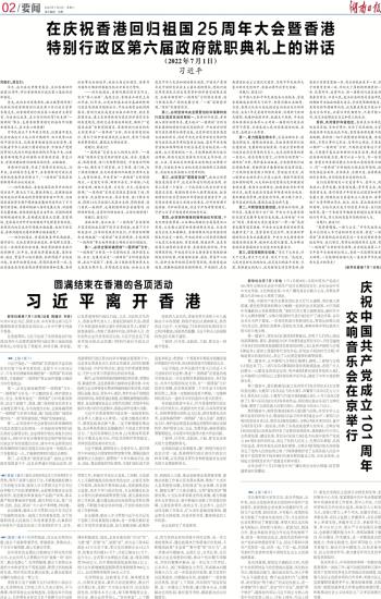 在庆祝香港回归祖国25周年大会暨香港特别行政区第六届政府就职典礼上的讲话