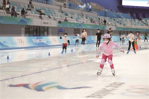 图为当日,游客在国家速滑馆体验滑冰。新华社发