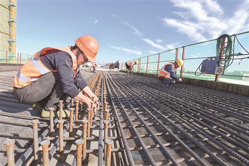 8月5日8时许,中建五局长沙轨道交通1号线北延一期工程1—2项目施工现场,工人在高架桥桥面焊接钢筋。近期长沙持续高温天气,该工程项目部采取错时施工、减少户外作业时间、发放防暑降温物品等措施,在保障施工安全的前提下,高质量、高标准完成施工任务。截至目前,项目累计完成现浇箱梁、钢箱梁31联,完成退围2公里,施工进度稳步推进。 湖南日报全媒体记者 田超 通讯员 陈秋香 摄影报道