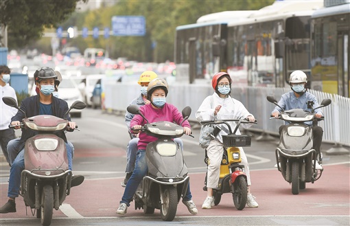 10月5日,长沙市开福区芙蓉北路,市民身着外套出行。当天,长沙最高气温仅为16℃,相比3日最高气温38℃下降了20多℃。气温骤降,广大市民请及时增添衣被,谨防感冒。