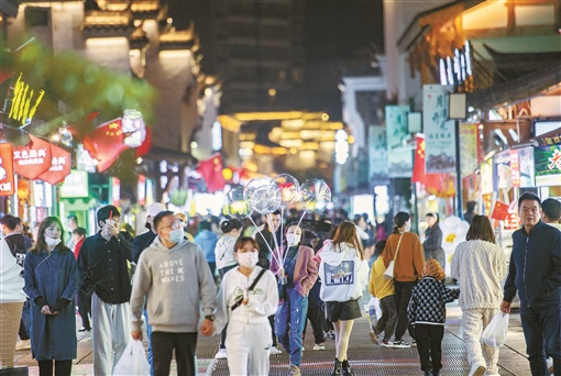 10月5日晚,常德市柳叶湖河街人头攒动,众多市民和游客在此欣赏夜景、品尝美食。国庆假期,常德市主城区越“夜”越精彩,市民和游客流连忘返。