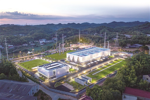 在株洲芦淞区白关镇千亿大道上,新建成的株洲成家220千伏智慧能源站掩映在高低起伏的绿色丘陵之中,它有着精致时尚、线条灵动的建筑造型,与大自然和谐相融,这是全国首座220千伏智慧能源站。