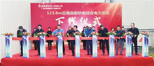今年1月8日,由湘电研制的DIEP-4型123.8m沿海自卸砂船直流综合电力系统成功下线,标志着湘电综合电力系统成功实现市场化推广。该系统可大幅减少船舶柴油机数量、提高运行效率、降低运营与维修成本、大幅降低碳排放,代表着工程船舶绿色动力系统的发展方向,市场前景非常广阔。目前,该系统运行良好,尤其是高效率、高可靠性、低成本、低噪音、低排放得到了客户的高度评价。
