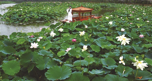 “湘莲甲天下,潭莲冠湖湘”,万亩荷塘碧浪翻腾,贡品湘莲名誉四海。