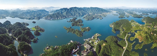 水府旅游区,大小岛屿34个,如珍珠般洒在湖面,岛屿碧水相连,宛如人间仙境;