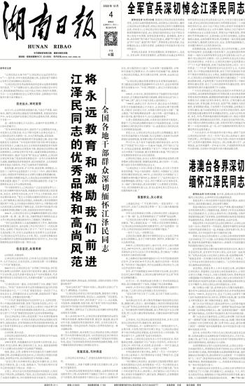 江泽民同志的优秀品格和高尚风范将永远教育和激励我们前进