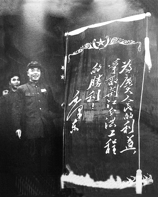 1952年,毛泽东主席为荆江分洪工程题词:“为广大人民的利益,争取荆江分洪工程的胜利。”