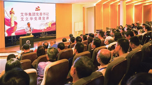 除汉森制药党群服务中心外,艾华集团打造的党建展厅“华馆”,内涵丰富、图文并茂,也有着浓厚的党建氛围。