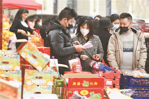 1月12日,红星全球农批中心,市民在选购商品。春节临近,湖南各水果批发市场里一派繁忙景象,随处可见工人装卸和市民购买水果的忙碌身影,浓浓的年味扑面而来。