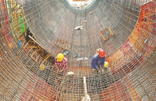 3月23日,毛俊水库嘉禾灌区项目工地,工人在加紧施工。毛俊水库是172项国家重大水利工程之一,以灌溉为主,结合供水兼顾发电。 黄春涛 摄