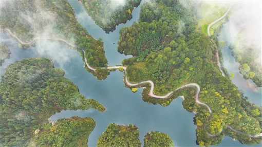 3月23日,通道侗族自治县玉带河国家湿地公园城坪段秀美如画。 李尚引 石猛雷 摄影报道