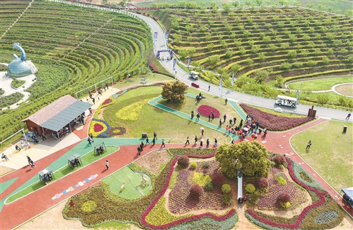 4月8日,安化县茶乡花海生态文化体验园,阳光照耀下的阡陌田园宛如五彩斑斓的调色板,吸引游客前来尽享美好春光。