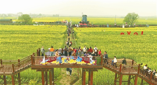 2017年,长江村通过流转土地规划出2000亩的油菜花海,2019年举办第一届油菜花节,村子每天平均接待游客上万人。目前,该村已举办五届油菜花节,吸引游客近百万人,油菜花成了长江村的“金色名片”。同时,长江村积极引导村民发展绿色种植养殖业,栽种草莓、向日葵,养龙虾……集体经济正蓬勃发展。