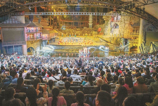 4月30日晚,凤凰古城,大型实景剧《边城》演出现场人气火爆。“五一”假期,来自全国各地的游客通过《边城》实景演出,欣赏湘西的山水灵动,聆听优美的湘西声音,感受湘西人文情怀的真善美。