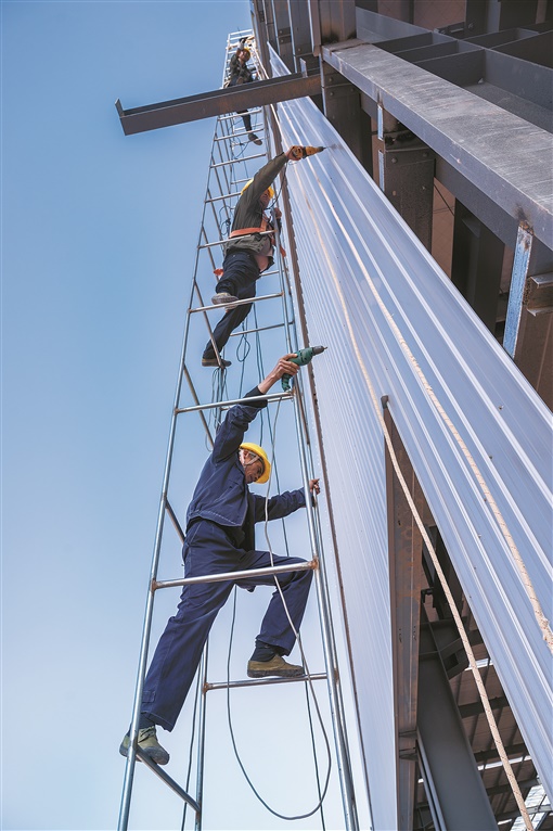 5月1日,娄底经开区内湖南乐立保电气有限公司项目工地,工人正抓紧施工。吴永华 摄