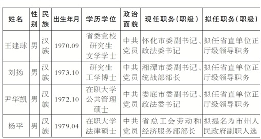 为了加强对干部选拔工作的监督,提高识别和任用干部的准确程度,现对省委常委会会议研究决定的下列拟任人选进行任前公示: