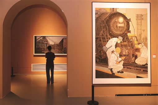 6月9日,文艺爱好者在参观画作。当天,“谱写湖南新篇章”湖南工业题材美术作品展在湖南美术馆开幕。本次陈列作品138件,展示了湖南工业的历史之美、发展之美、人文之美、智造之美、工厂之美、机械之美。展览将持续至6月30日,免费对公众开放。