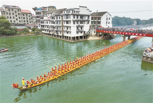 6月12日上午,益阳市赫山区兰溪镇,一条长99.9米、宽1.88米的超长龙舟试水。端午节前夕,兰溪镇北岸新村制作了一条独一无二的双桡百米龙舟(两边坐着划的叫坐桡,中间站着划的叫站桡,称为双桡),龙舟有106个间仓,可乘坐420名划手。2016年,双桡龙舟被列入湖南省第四批非物质文化遗产名录。