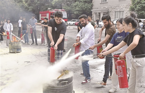 6月25日上午,长沙医学院举行消防演习,师生在消防员的指导下进行了火场疏散、灭火等应急处置项目的演练。第22个全国“安全生产月”期间,该学院开展了一系列安全教育活动,提高师生的安全意识和应急处置能力。