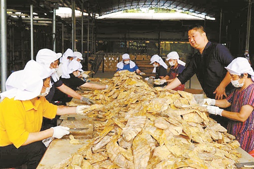 春笋挖出来后,要及时处理,否则会发酸影响品质和价格。何震与当地多个竹笋基础好的村签订协议,将竹笋粗加工生产线建在村里。附近的南山村今年收竹笋70多万公斤,比去年增加20多万公斤,给村集体带来5万元收入。该村党总支部书记肖忠说:“与何震合作后,我们在村里修建加工竹笋干的笋榨49个,年加工鲜笋能力达到100万公斤。”