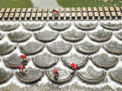 7月2日,通道侗族自治县万佛山镇木脚村,湖南科技大学潇湘学院大学生环保志愿者在打捞河中枯树枝。连日来,多所大学学生来到该县进行文化、科技、卫生“三下乡”暑期实践活动,传递青春正能量。刘强 石猛雷 摄影报道