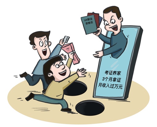 “考证养家”,这是近年来一些培训机构在微视、抖音等平台频繁推送的内容,让人趋之若鹜。考个证真的就能养家,实现人生“躺赢”吗?近日,记者通过调查发现,这大多不过是一些培训机构利用副业或兼职为饵,诱导考证群体掏培训费罢了。事实上,学习数天或几个月拿到的证书,并没有什么含金量。对此,业内人士指出,学习多门技能考证的想法是好的,但这里面的“坑”不要踩。